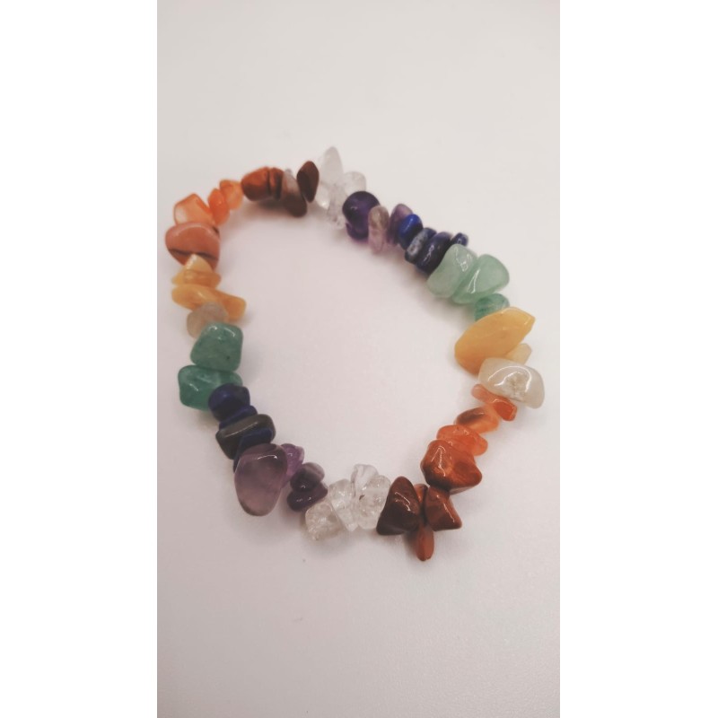 PULSERA ELÁSTICA DE LOS 7 CHACRAS TAMAÑO CHIP Descubre la armonía y el equilibrio con nuestra pulsera chip de 7 minerales chacra. Esta pulsera está cuidadosamente elaborada con piedras auténticas que representan los siete chacras: amatista, lapislázuli, sodalita, aventurina verde, citrino, cornalina y jaspe rojo. Cada mineral se selecciona por sus propiedades energéticas, ayudándote a mantener un flujo positivo de energía y bienestar. Ideal para cualquier ocasión, esta pulsera no solo es un accesorio elegante, sino también una herramienta para promover la paz y el equilibrio espiritual en tu vida diaria.