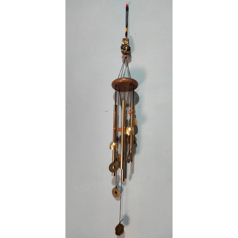 Móvil metálico con sonido agradable,co 4 campanas y 4 tubos. Contiene la ( Ganesha) símbolo de las artes y la ciencia y la moneda agujereada símbolo de salud.medida 75cm de largo.