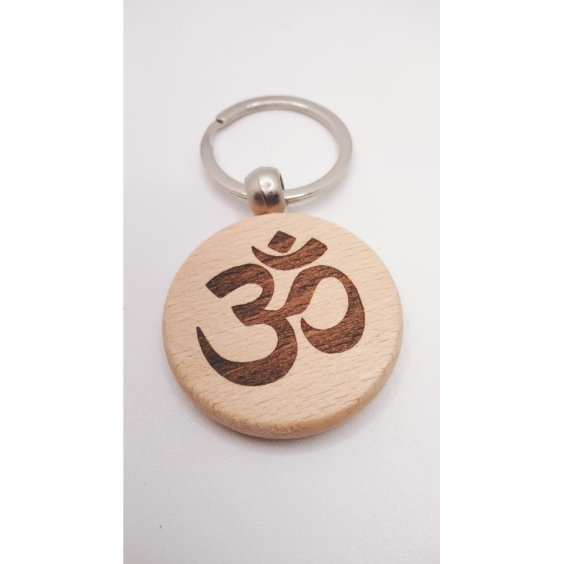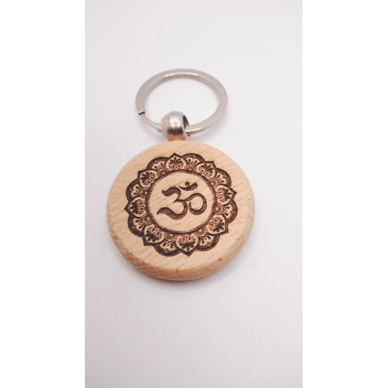 .el simbolo de relajación yoga (Om) en forma de llaveros de madera tallado con técnicas láser, el dibujo es permanente , hay que especificar el modelo.