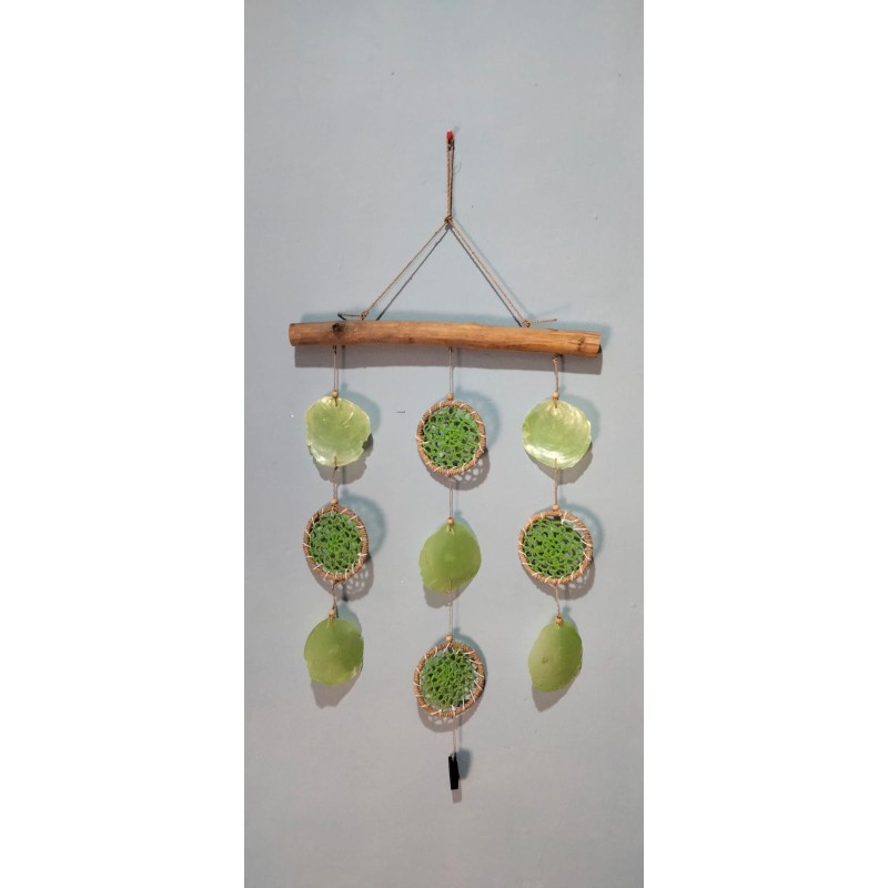 Un móvil elegante hecho de concha nácar,proporciona un reflejo de luz cálido y acogedor , también añadí un toque de misticismo, encanto a tu espacio con colores y sonidos relajantes.medida 82*37 cm.