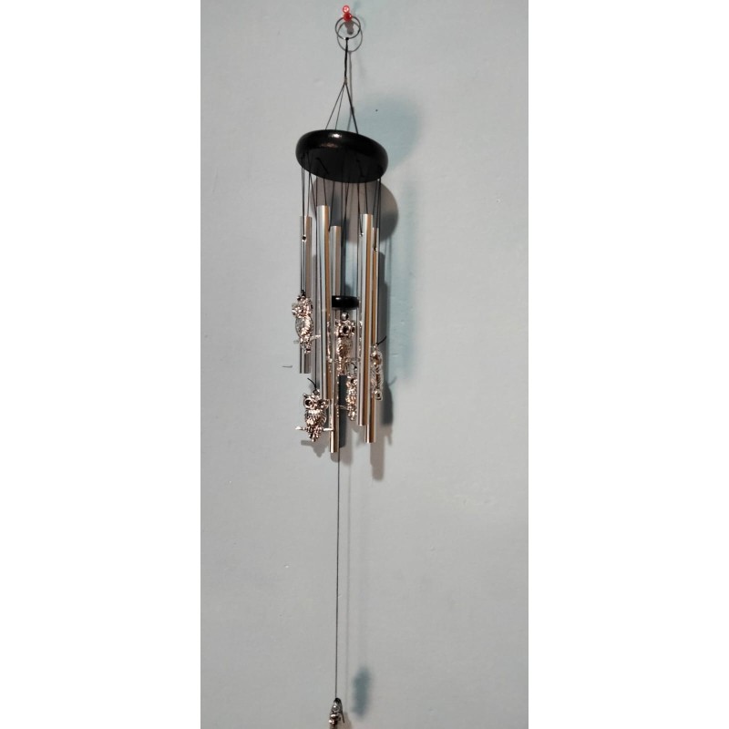 Móvil metálico de búhos que están asociados o más bien simbolizan sabiduría y misterio.hecho de tubos de acero que dan un toque de misticismo con su sonido relajante.