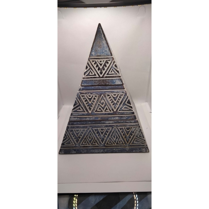 Hecha de madera de calidad. Contiene 2 cavidades.los aztecas la construiron para rendir culto a su dios.tambie albergaba las tumbas de sus reyes. Simboliza el misterio (no se sabe exactamente cómo la construiron) y la solidez( por su durabilidad).medida 29,5*22*22 cm.