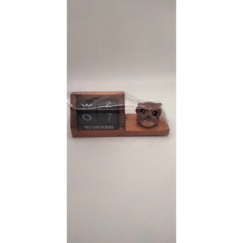 Calendario 📆 perpetuo hecho de madera pintada y tallada a mano con tĂ©cnicas ancestrales que contiene todos los meses y dĂas del año.