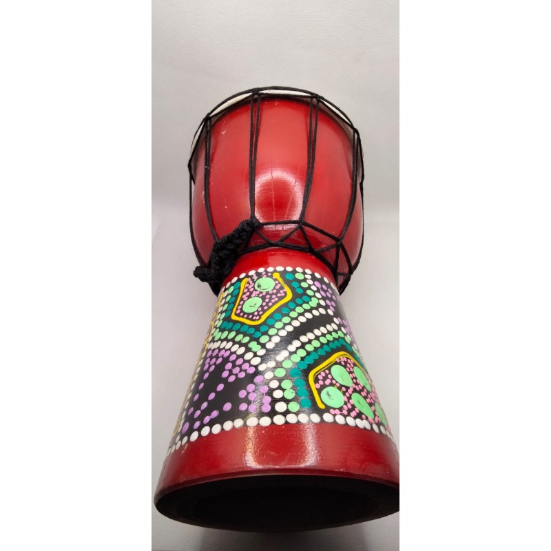 Timbal de indonesia hecho de madera pintada y tallada a mano con técnicas ancestrales.
