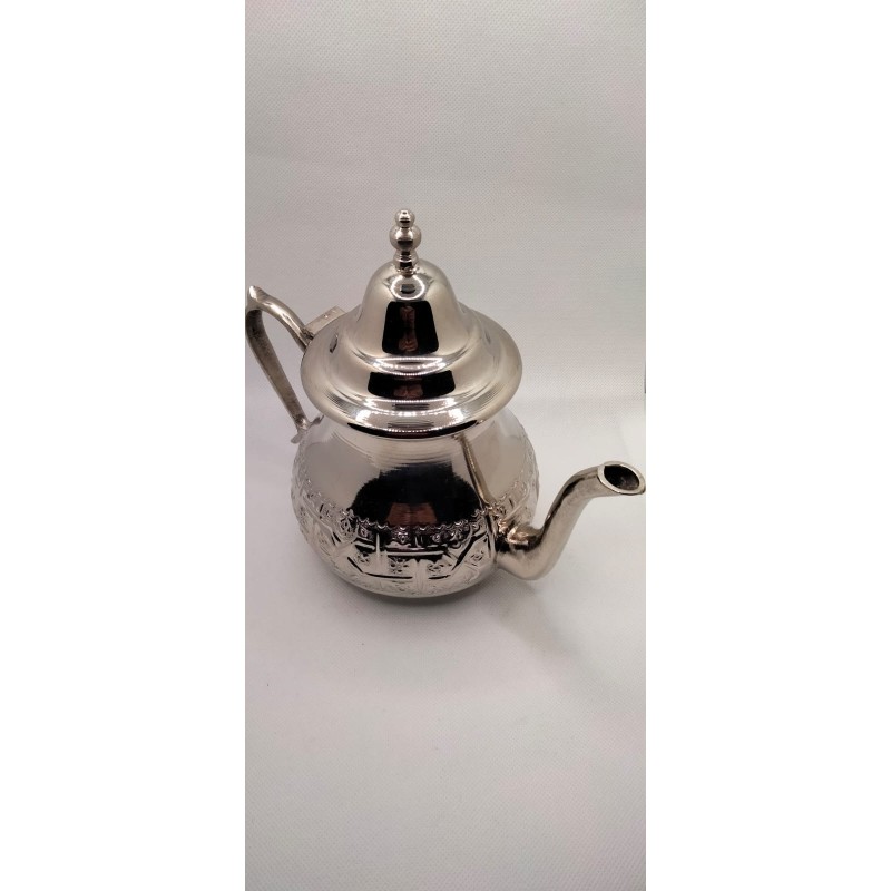 Tetera moruna grande hecha de auténtica alpaca marroquí con técnicas ancestrales que contiene un filtro interior y una capacidad +- 750ml.