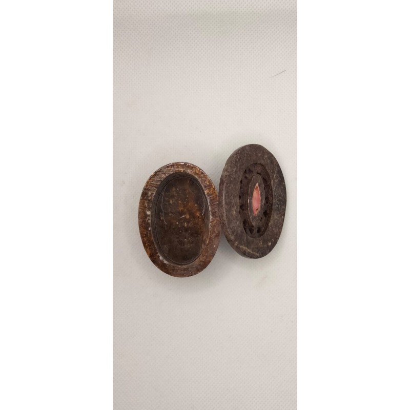 Cajita hecha de auténtica esteatita o piedra de jabón brasileña.ests tallada con técnicas ancestrales y incrustada por concha nácar.