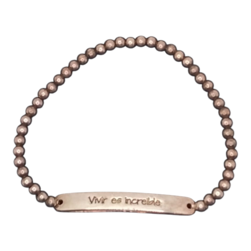 Es una pulsera hecha de plata de ley 925, lleva escrito la frase "vivir es increíble".