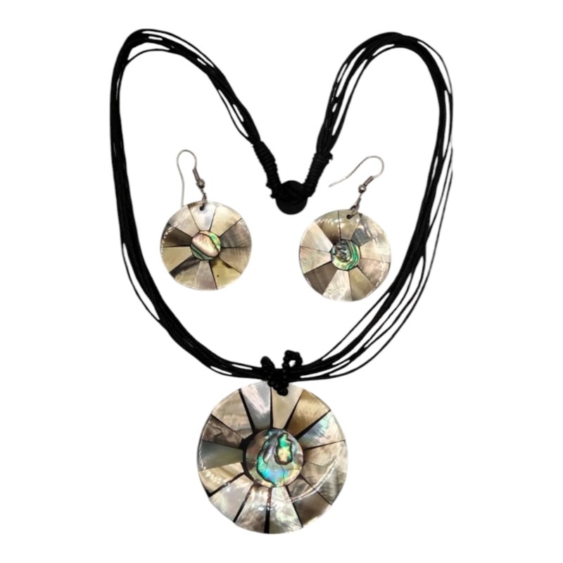 Conjunto concha nácar y Ávalon hecho de material natural, hasta el cordón está hecho de algodón natural con cera.