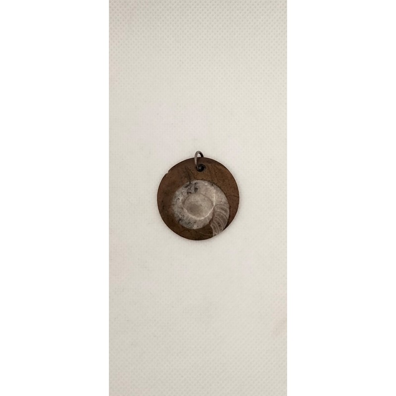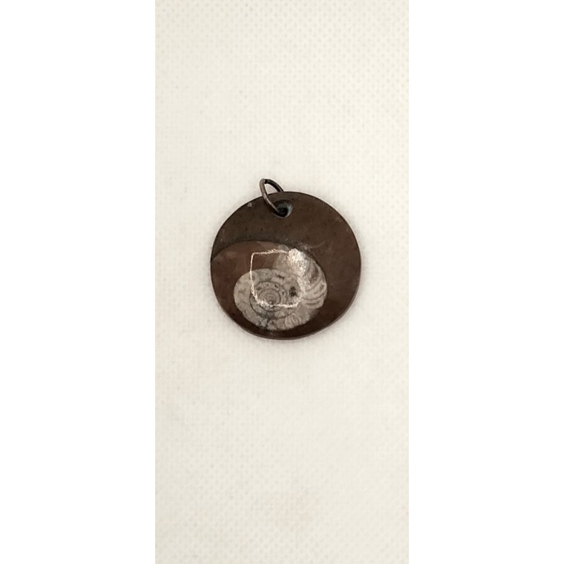 Es un colgante que contiene un molusco fósil de la clase de los cefalópodos,con concha externa en espiral.