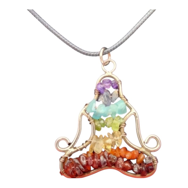 Colgante yogui hecho de alpaca y cadena de acero inoxidable especial para los alérgicos.