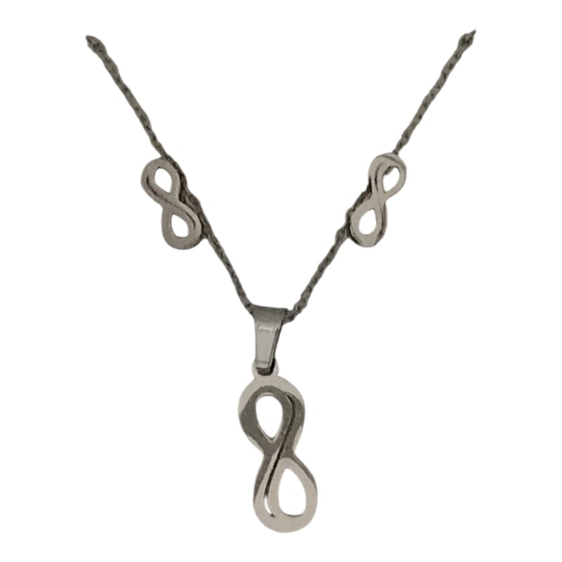 Conjunto infinito incluye cadena , colgante y pendientes todos de acero inoxidable especial para los alérgicos.