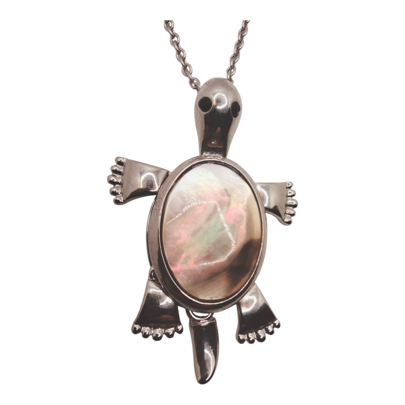 La tortuga con concha nácar marrón ,por su brillo y reflejos le atribuyeron diversos símbolos como apertura mental , claridad mental..... La tortuga representa el autoprotección y longividad.