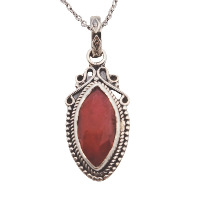COLGANTE DE PLATA ESTERLINA 925 Y PIEDRA RUBÍ CON CADENA DE PLATA DE 45 cm