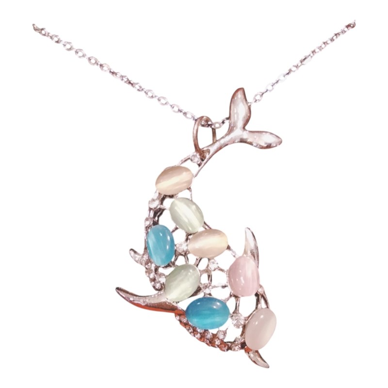 Colgante delfín simboliza el cariño con inteligencia de ese animal, y el mineral ojo de gato representa la visión clara y la intuición .