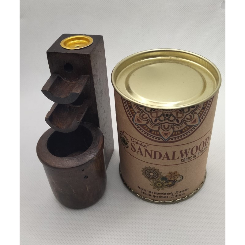 Base de reflujo, en forma de una fuente hecha de madera y incluye 15 conos naturales de sándalo hindú.