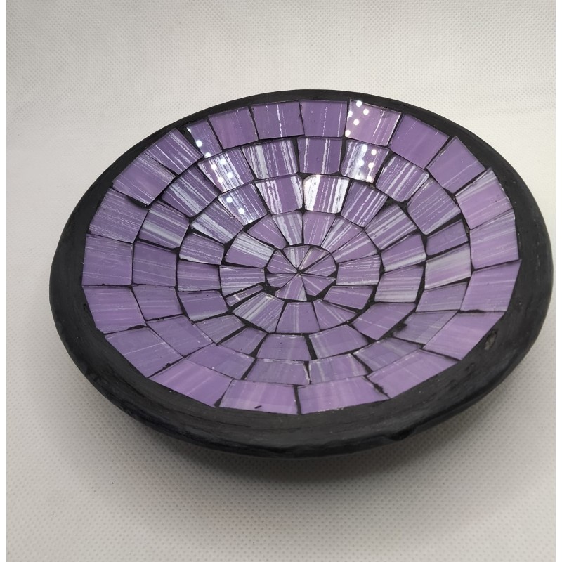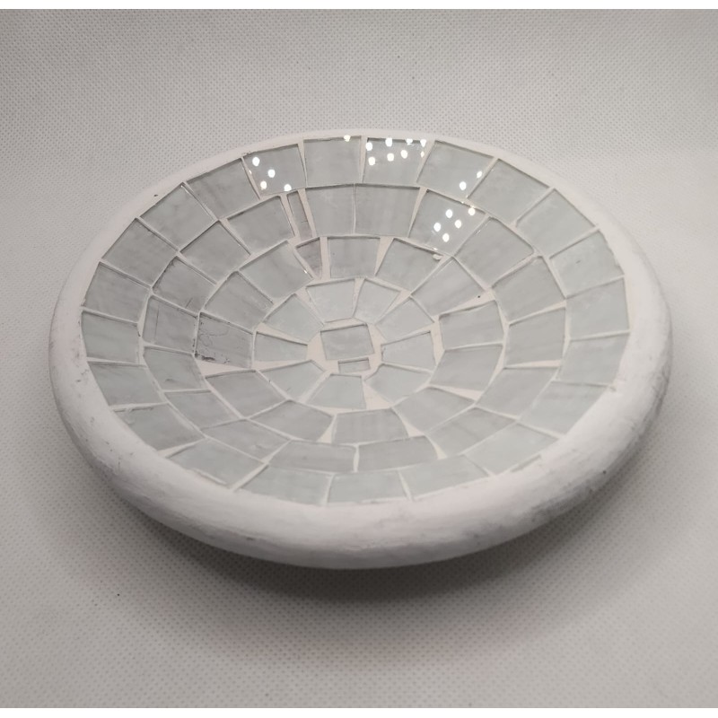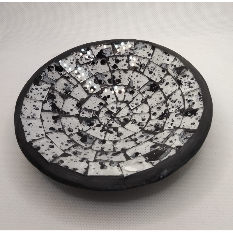 Plato hecho de barro y mosaico de cristal hecho a mano.