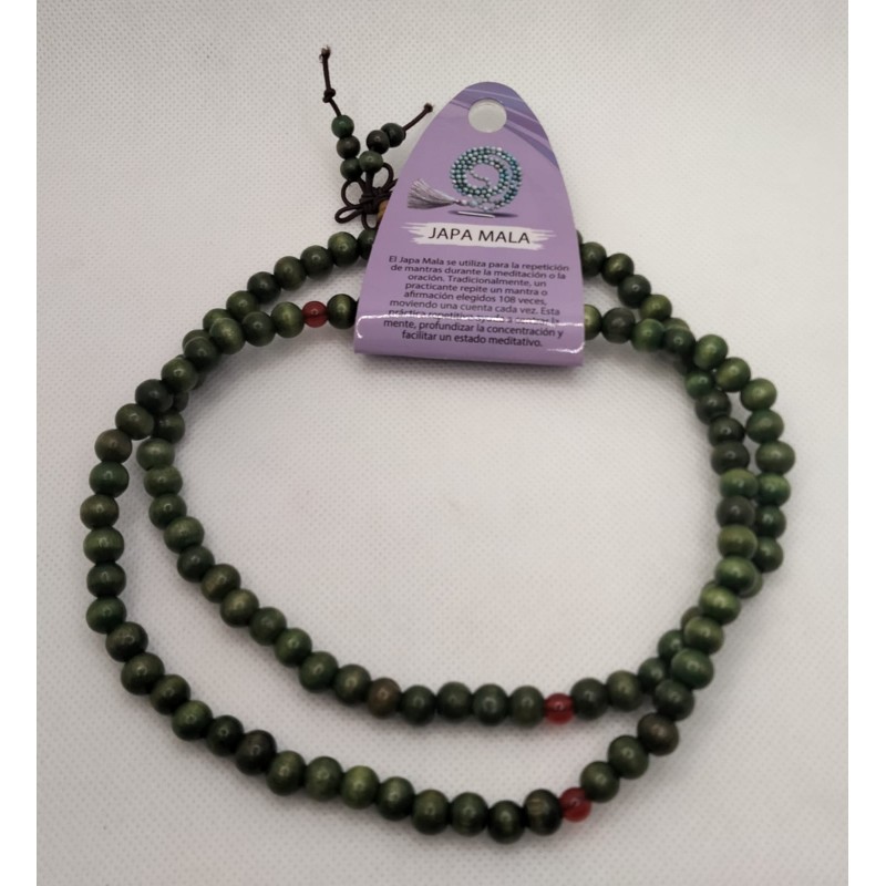 Malas o japa mala hecha de 108 bolsas de madera, ideal para tu práctica diaria de repetición meditativa.