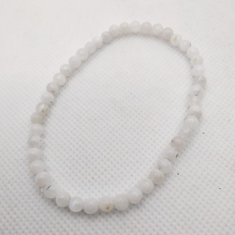 Pulsera elaborada con piedra luna natural, conocida por su delicado efecto adularescencia, un brillo nacarado que cambia con la luz. Este mineral pertenece al grupo de los feldespato, con dureza 6-6,5 y tonos que van del blanco perlado al azul suave. Una pieza luminosa, elegante y perfecta para quienes buscan un toque sutil y mágico en su estilo.