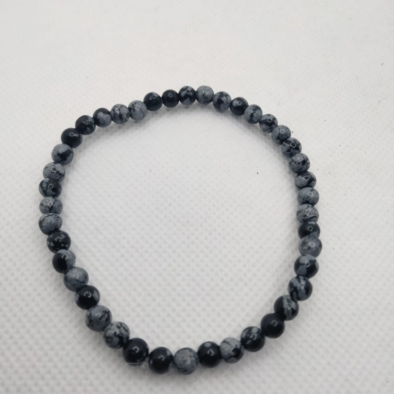 Obsediana nevada y obsediana negra combinadas en una pulsera única.